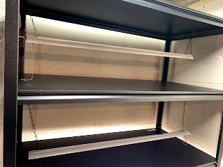 I have had the shop lights in my basement for a number of months now ready to go. "Grow lights" can get expensive quickly, so I recommend buying LED shop lights instead to save some cash. The bonus is they are often on sale! Ours are 5000 lumens - we also have some that are 10000, but we found out quickly that that was going to trip our breaker in this corner of our basement so 5000 it is!